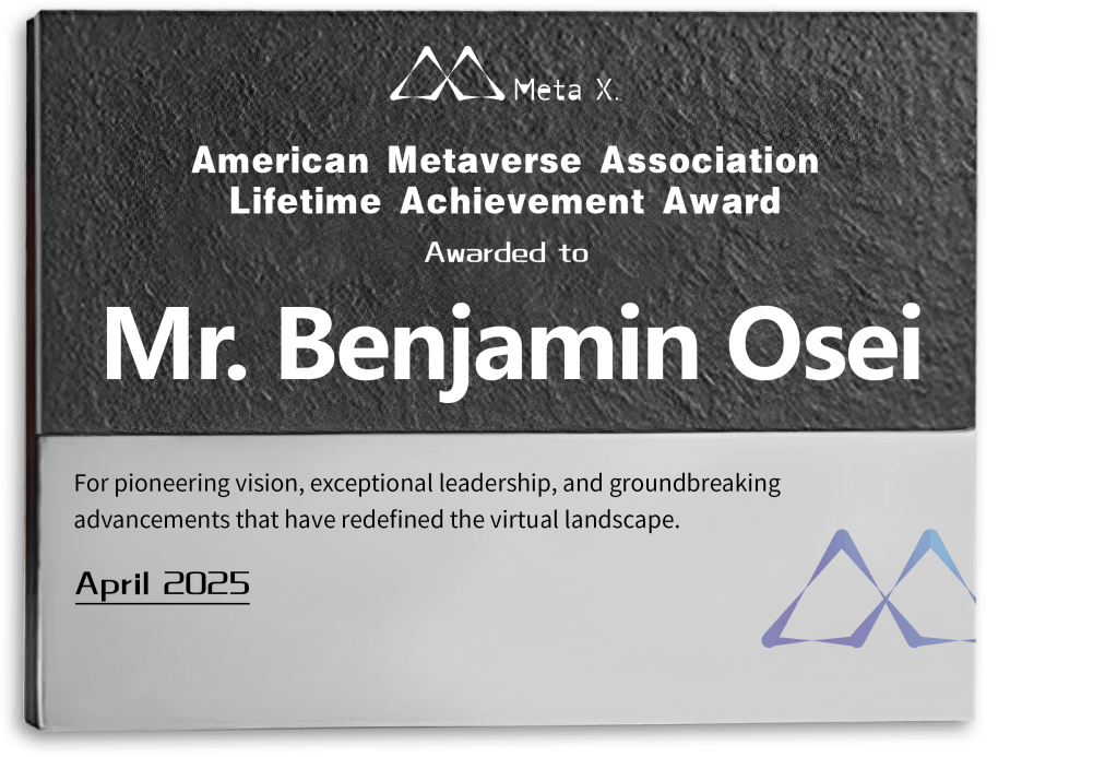 The US Metaverse Association is proud to honor Mr. Benjamin Osei, visionary technologist and educator from Ghana, with the 2025 Lifetime Achievement Award in recognition of his trailblazing contributions to building Africa’s first continent-wide virtual education infrastructure powered by metaverse technologies.